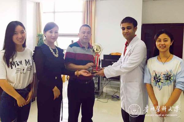 九月十五日是印度的教师节,海外教育学院印度留学生为了表示对教师们的崇敬与感谢,特别制作了刻有“最佳教师”字样的奖杯,赠与全校参加留学生工作的老师们。海外教育学院院长付启宏、副院长康颖倩老师代表学院接受了留学生代表赠送的奖杯并合影留念。beat365唯一官方网站海外教育学院成立约一周年,虽然起步较晚,但是在学校党委行政领导的高度关心及支持下,学院发展正在逐步走向规范化,学院全体教职员工也向留学生们表示将再接再厉、辛勤耕耘,为学校国际化奉献青春和汗水!