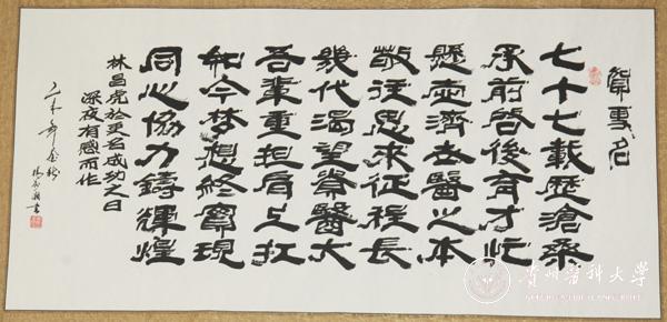 来到学生作品展区,林书记不时询问有关情况。他强调,加强医学生的人文素质教育势在必行,尤其是“关爱生命”、“以人为本”、“医者仁心”的医学人文精神的培养,才能在其医学职业生涯中用“仁心”构建和谐的医疗人文环境。他希望省(市)老科协的老专家们发挥自身优势积极支持学校培养和提高学生的人文素养;他要求校团委运用好老同志资源,通过社团活动、专题培训、举办比赛、作品展览等多种途径培养和提高学生的人文素养和艺术修养,繁荣校园文化,促进学生全面发展。