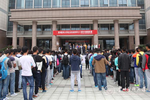 九月的花溪,雨落青山逸,天高色彩稠;九月的贵医,丹青书历史,光影展国魂。9月21日中午,以“铭记历史、缅怀先烈、热爱和平、开创未来”为主题,由省(市)老科协,beat365团委、离退休处主办,图书馆承办的“纪念抗战胜利七十周年书画摄影展”,在beat365南校区图书馆隆重开展。