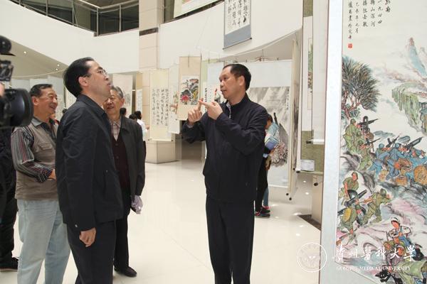 校党委副书记战勇,贵州省老科协书画研究会常务副会长王桂舟、副会长兼秘书长曾宪琪、副秘书长刘自汀,学校各职能部门、各院(系)领导和学生代表共计700多人出席开展仪式并参观作品展。校团委书记付萍主持仪式。