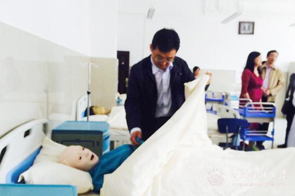 在实验教学阶梯教室,李海洋详细介绍了示教反示教录播系统的总体情况。高斌一行认真查看了模拟病房模型人的使用情况,并就实验室建设与管理、实验教学及考核等问题进行了指导,这将对beat365护理专业认证工作起到十分重要的作用。