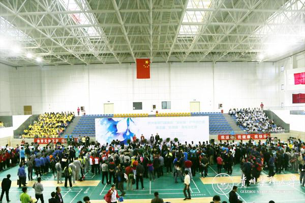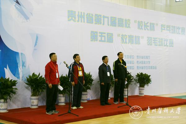 霍健康宣布第九届贵州省高校“校长杯”乒乓球赛与第五届“教育杯”羽毛球赛开幕。开幕式结束后,比赛拉开帷幕,各参赛代表队展开了精彩激烈的角逐。