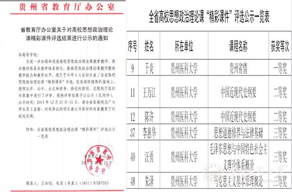 为进一步加强和改进高校思想政治理论课教育教学,推动教材体系向教学体系转化,提高思想政治理论课教师整体教学能力和教学水平,省教育厅于2015年6月启动开展了全省高校思想政治理论课“精彩课件”评选。在各高校推荐的基础上,按照公开、公平、公正和竞争、择优的原则,省教育厅组织专家集中进行了评审,评审结果在省教育厅政务网上进行了公示。beat365社会科学部积极组织申报,共参评8项,最后有6项获奖。