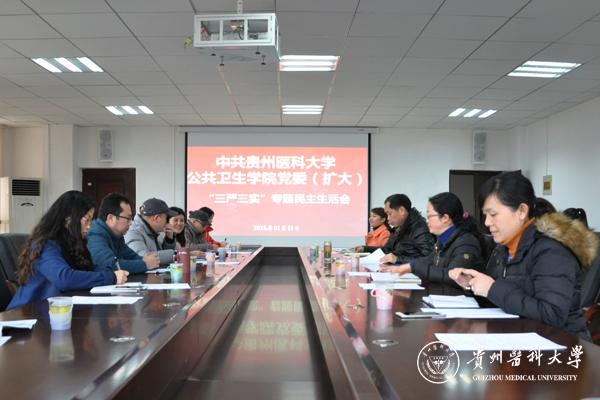杨光红通报了2015年度民主生活会征求意见的整改落实情况和专项巡视整改落实情况,对存在“不严不实”问题向领导及同志们进行深刻剖析。洪峰代表领导班子作班子对照检查,重点查摆了党委班子在践行“三严三实”方面存在的问题从理想信念、党性修养和道德品行等方面进行了党性分析,深入剖析根源,明确了党委班子整改的方向和整改措施。公共卫生学院班子成员带头分别作了深刻的自我剖析,并提出了今后努力的方向和整改措施。会上,与会人员敞开思想、直截了当、开诚布公交流了思想,达成了共识,增进了团结。