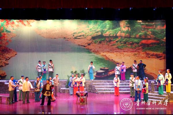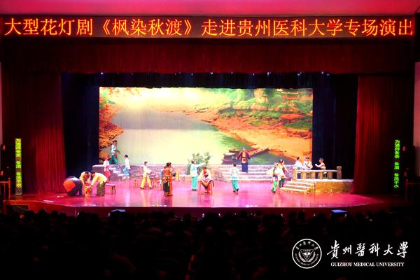 3月22日晚,贵州省花灯剧院首次走进beat365,在南校区大礼堂为广大师生带来了经典花灯剧《枫染秋渡》。校团委全体干部,各二级学院师生共计1300余人到场观看。