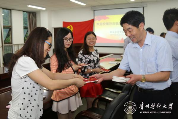 林昌虎和吕保平亲自把每一本党章送到党员手中。林昌虎详细询问了教职工党员和学生党员的学习、生活、工作情况,并勉励广大学生党员,在认真学习好党章、习近平总书记系列重要讲话的同时,要做好专业知识学习,增强本领,增长才干,做时代先锋,为将来投身医疗卫生事业打下坚实基础;勉励教职工党员要学做结合,发挥先锋模范作用,为学校评估认证工作贡献力量。