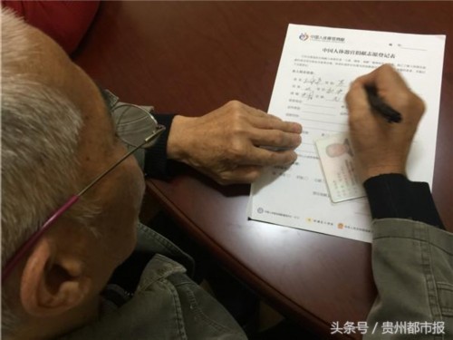 记者在现场看到,除了江涛之外,还有一位70岁的王大爷也闻讯赶来登记报名。王大爷告诉记者,两年前,自己在看电视新闻时了解到了“器官捐献”。了解之后,王大爷非常受触动,他说:“走了之后还能救人,对社会也能有点贡献。”对于王大爷的这个“愿望”,他的家人都表示支持。大爷说,他的家里人都是“通情达理”的人,起初虽然觉得大爷的想法有些突然,但是他们都尊重老人家的想法。多方联系之后找到了beat365唯一官方网站附属医院移植科,在医院的帮助下,老人成为了贵医附院器官捐献登记站的第一批志愿者。