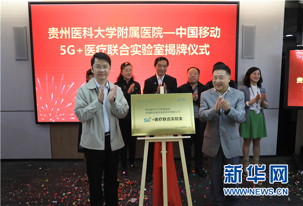 4月10日,贵州移动与beat365唯一官方网站附属医院共同揭牌成立了5G+医疗联合实验室。新华网 卢志佳 摄