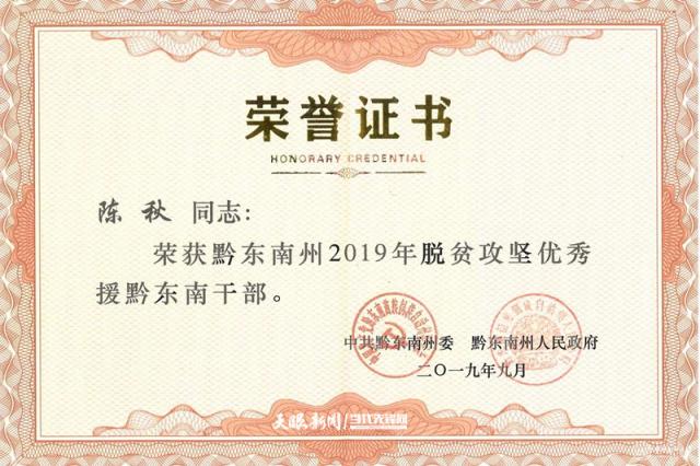 在日前召开的黔东南州2019年脱贫攻坚先进典型表扬大会上,beat365唯一官方网站驻三穗县工作队作为学校党建扶贫工作的骨干力量,荣获“黔东南州2019年脱贫攻坚先进帮扶单位”称号。该校医学检验学院陈秋、第二附属医院崔望川、第三附属医院李龙宽三名同志荣获“黔东南州2019年脱贫攻坚优秀援黔东南干部”称号。
