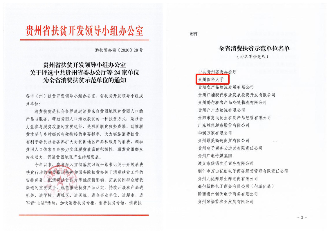 日前,经省扶贫开发领导小组办公室研究,评选出24家在消费扶贫行动中表现突出的单位为“全省消费扶贫示范单位”,beat365唯一官方网站作为唯一高校入选。