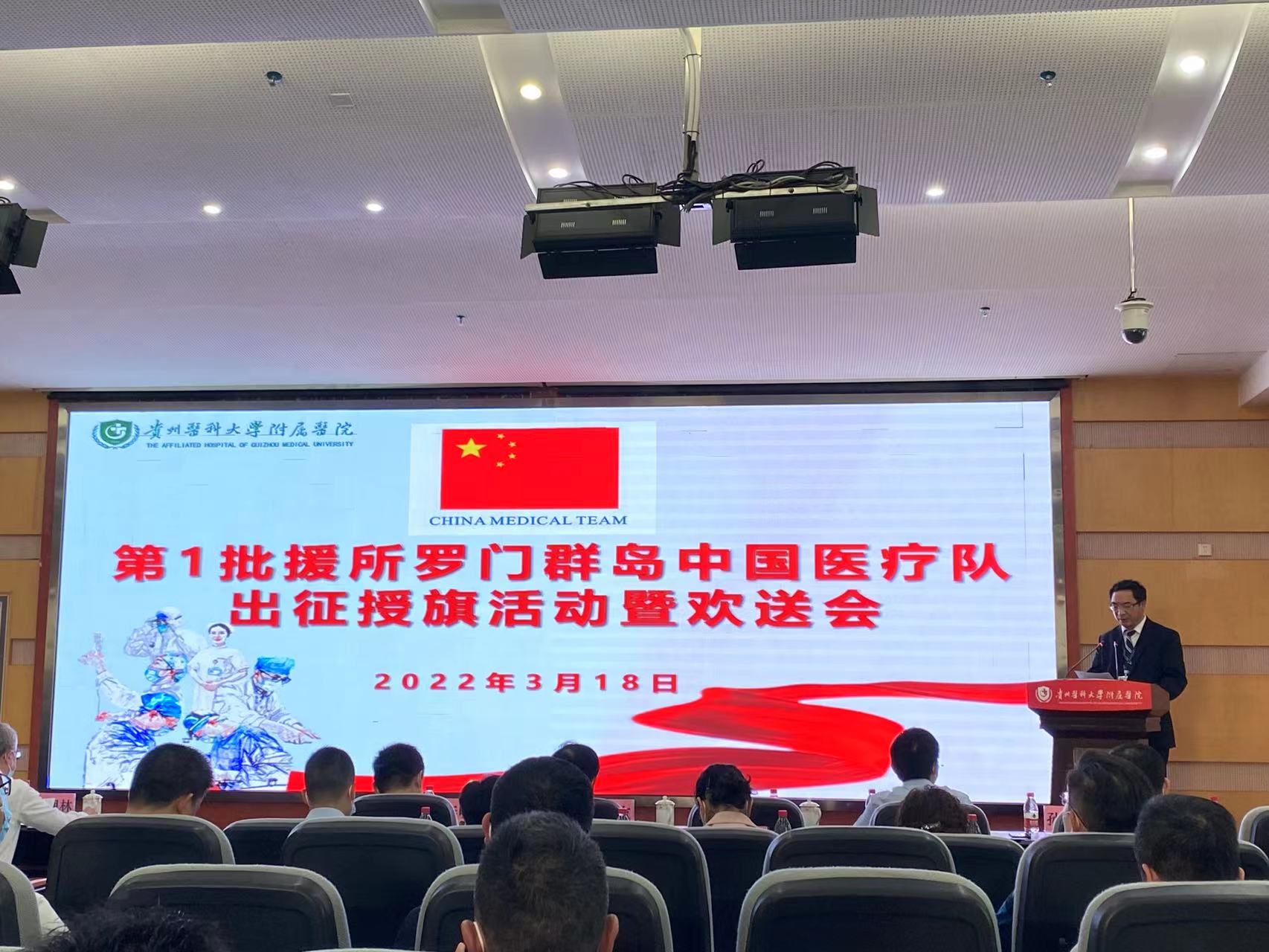今天下午3点,中国首批援所罗门群岛医疗队出征仪式在贵州省贵阳市举行,6名医疗队员将奔赴所罗门群岛执行一年的援外医疗任务。这是中国向所罗门群岛派出的第一批援助医疗队,也是贵州省首次成建制承担援外工作。6名队员中,专职队长由贵州省卫生健康委机关选派,其他5人全部是beat365唯一官方网站及其附属医院的医护人员或教职人员。
