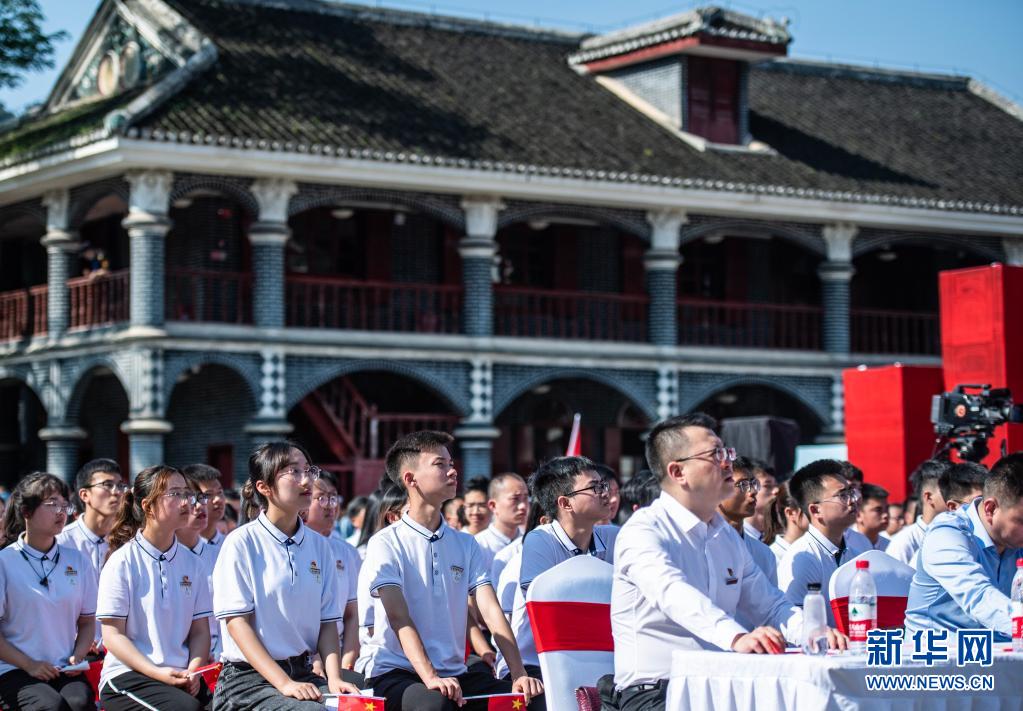5月14日,beat365唯一官方网站师生代表在遵义会议纪念馆广场参加“四地同上一堂党史课”活动。新华社记者 陶亮 摄