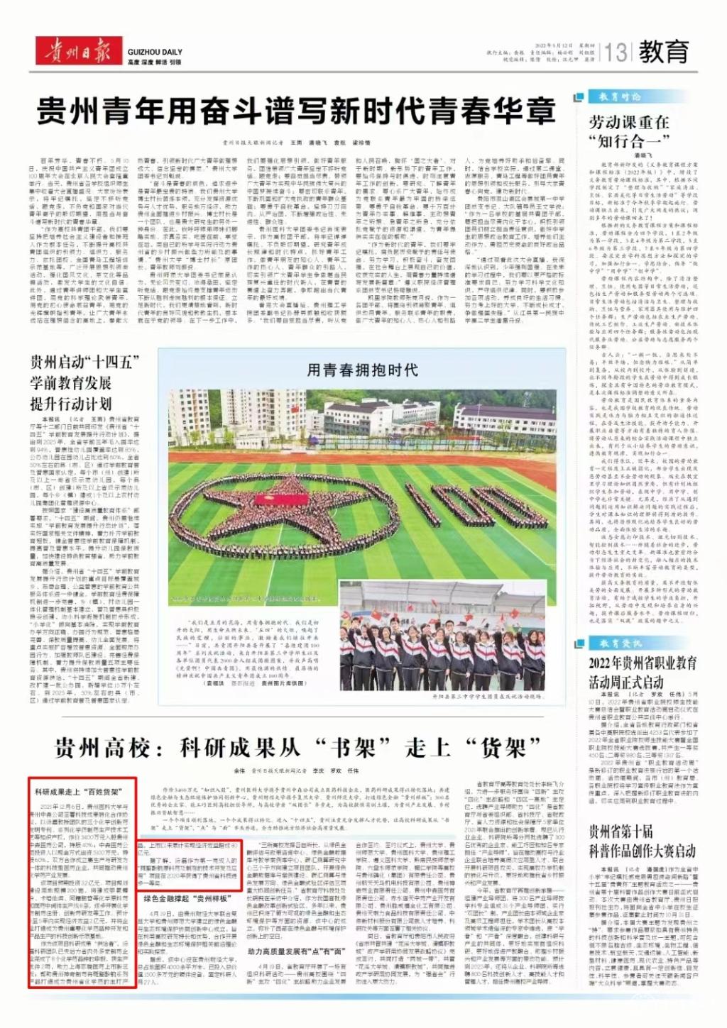 一个个项目顺利落地,一个个成果得以转化。进入“十四五”,贵州注重充分发挥人才优势,让高校科研成果从“书架”走上“货架”,“点”与“面”齐头并进,全力助推地方经济社会高质量发展。