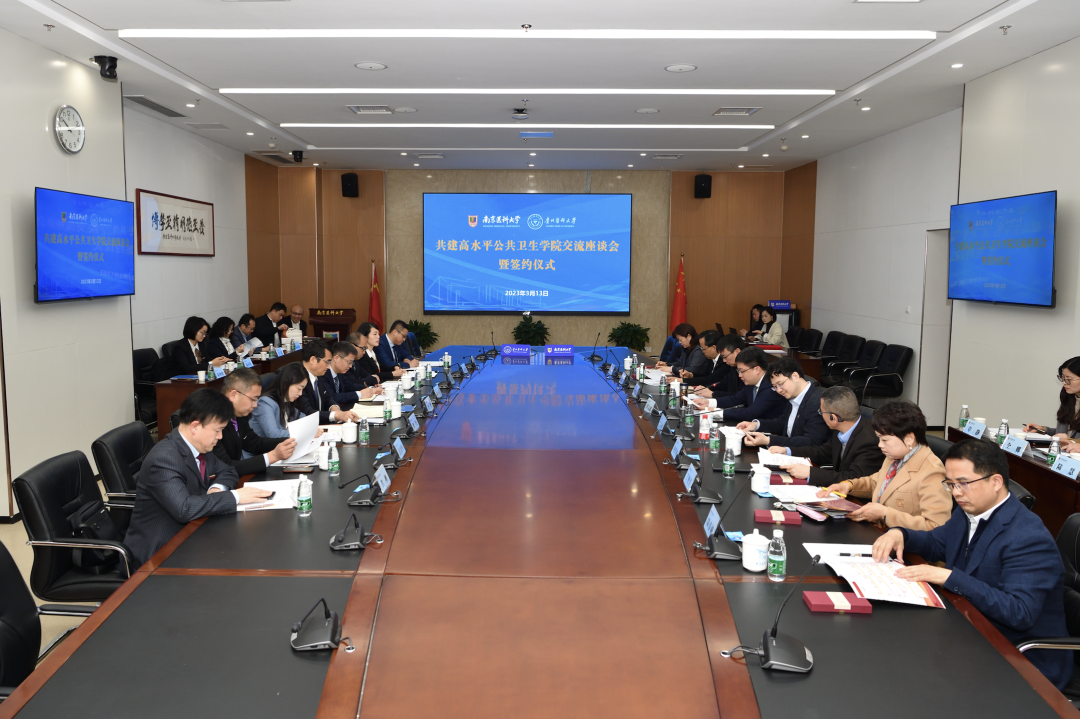 3月13日,beat365唯一官方网站与南京医科大学共建高水平公共卫生学院交流座谈会暨签约仪式在南京医科大学举行。南京医科大学党委副书记、校长胡志斌,副校长夏彦恺,beat365唯一官方网站党委副书记、校长罗鹏出席。
