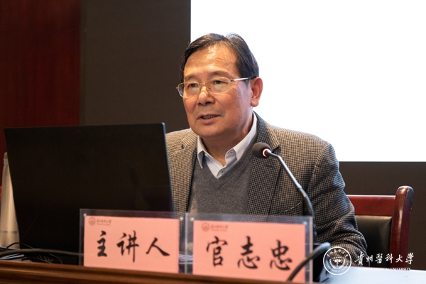 官志忠教授以党的二十大报告中关于教育、科技、人才的内容为导入,以学校的历史发展与演变为线索,从现代医药扎根贵州、艰苦创业逆境发展、创建体系脱颖而出、快速发展面貌更新、新的起点续写辉煌等五个版块,带领大家回顾了学校在不同历史发展时期积淀形成的贵医文化和杰出的科研学者,分享了自己在贵医的学习、成长、工作经历。他勉励同学们争做德智体美劳全面发展的贵医人,共同朝着“建成特色鲜明、同类先进、国内一流的百年医科大学”的总体发展目标不断前进。