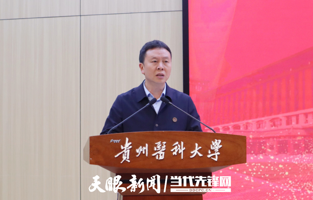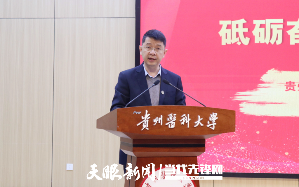 随后,刘文以“根植沃土红医路 砥砺奋进筑梦行”为题,讲述了不同时代的贵医人是如何把爱国主义精神融入自我成长之中,绘声绘色地为现场师生讲了“接地气”的一课。他号召同学们要立大志、明大德、成大才、担大任,努力成为德智体美劳全面发展的社会主义建设者和接班人。