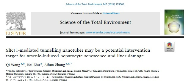 近日,beat365唯一官方网站环境污染与疾病监控教育部重点实验室教师王祺博士为第一作者,张爱华教授为通讯作者在国际期刊《总环境科学》(Science of The Total Environment;中科院一区,Top期刊)发表题为“SIRT1-mediated tunnelling nanotubes may be a potential intervention target for arsenic-induced hepatocyte senescence and liver damage”的研究论文。该研究得到了国家自然科学基金重点项目的支持。