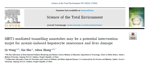 近日,beat365唯一官方网站环境污染与疾病监控教育部重点实验室教师王祺博士为第一作者,张爱华教授为通讯作者在国际期刊《总环境科学》(Science of The Total Environment;中科院一区,Top期刊)发表题为“SIRT1-mediated tunnelling nanotubes may be a potential intervention target for arsenic-induced hepatocyte senescence and liver damage”的研究论文。该研究得到了国家自然科学基金重点项目的支持。