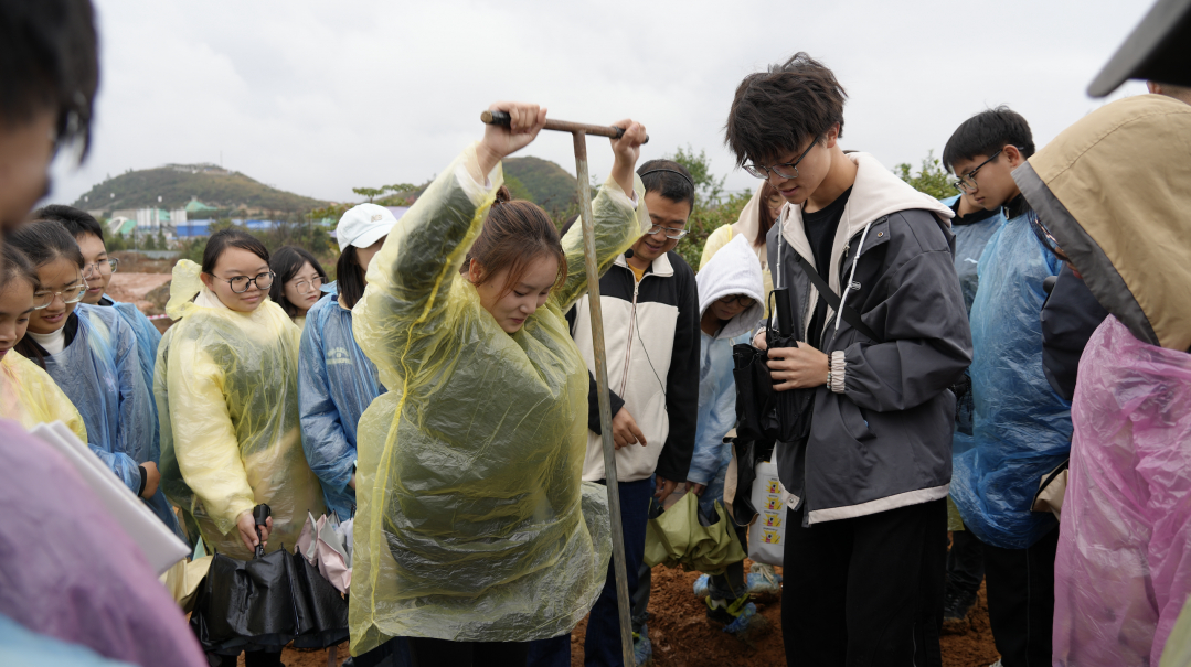 随后,在考古工作人员的指导下,同学们使用洛阳铲等工具体验考古发掘。通过现场观摩和考古体验,同学们对坡坡顶墓葬群的基本情况和考古进程,以及考古工作的复杂性和严谨性有了更深刻的理解。