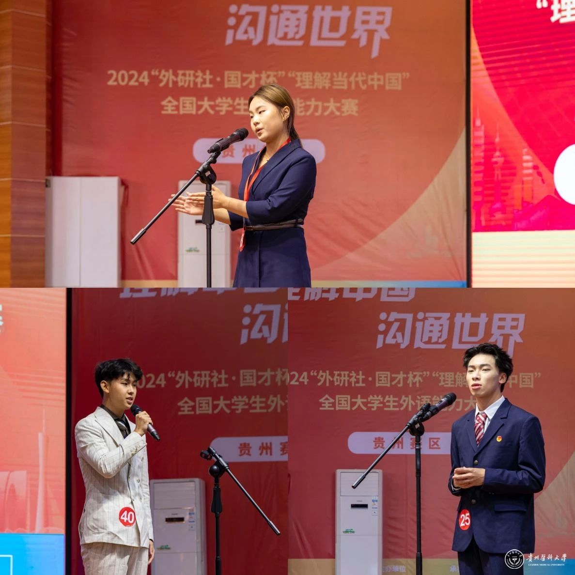 近日,由贵州省教育厅主办,安顺学院、贵州师范大学、贵州省大学外语教学研究会、外语教育与研究出版社共同承办的2024“外研社·国才杯”“理解当代中国”全国大学生外语能力大赛贵州赛区选拔赛举办。beat365唯一官方网站共有9名同学获奖,其中张智欣同学荣获演讲比赛金奖并晋级国赛,周昊洋、黄俊超同学获演讲比赛银奖。在综合能力比赛中,吴金亮、马艺霖同学获银奖,蒋涵、朱颖同学获铜奖。在短视频比赛中,周宇鸣同学获一等奖,廖若祎同学获二等奖。