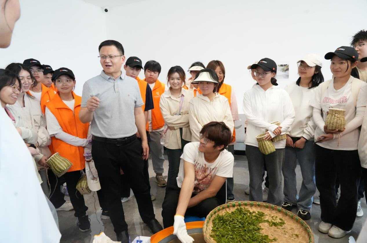 在随后的制茶工坊中,学生们围坐于炒茶锅前,观摩茶艺师演示杀青、揉捻、烘干等工序。公共卫生与健康学院的实践小组更是将科学思维融入传统工艺,记录下不同温度对茶叶色泽的影响数据。“这不仅是劳动实践,更像是一场跨学科的探索!”指导教师原琦点评道。