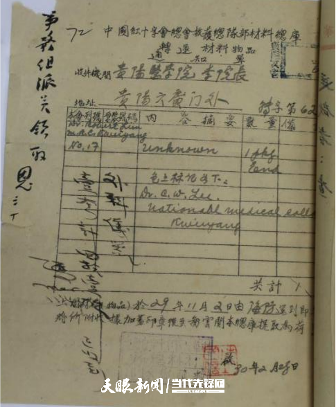 中国红十字会救护总队材料总库为国立贵阳医学院转运外科仪器通知单