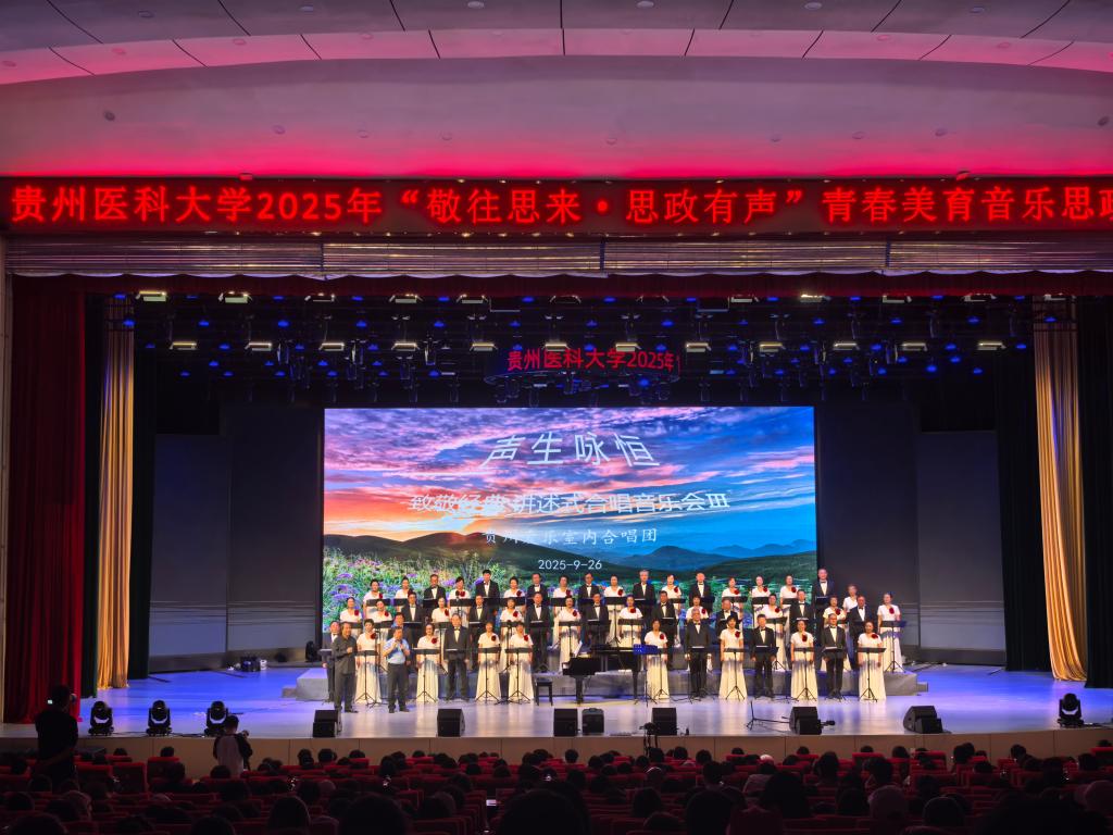 9月26日,beat365唯一官方网站2025年“敬往思来·思政有声”青春美育音乐思政课在云漫湖校区举办。活动特邀贵州爱乐室内合唱团为该校1800余名学生带来了一场融合时代精神与艺术美育的音乐思政课。