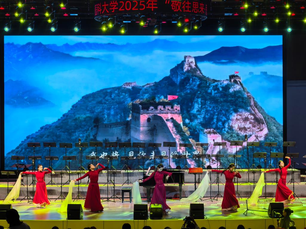 演出现场,贵州爱乐室内合唱团先后演绎《春游》《我住长江头》《黄河大合唱》等经典曲目;学校大学生艺术美育中心学生倾情呈现《如愿》舞蹈与《如你所愿》情景朗诵等节目。经典与创新的碰撞,让全场师生在艺术中感悟历史、体悟时代精神,在共鸣中坚定理想信念。