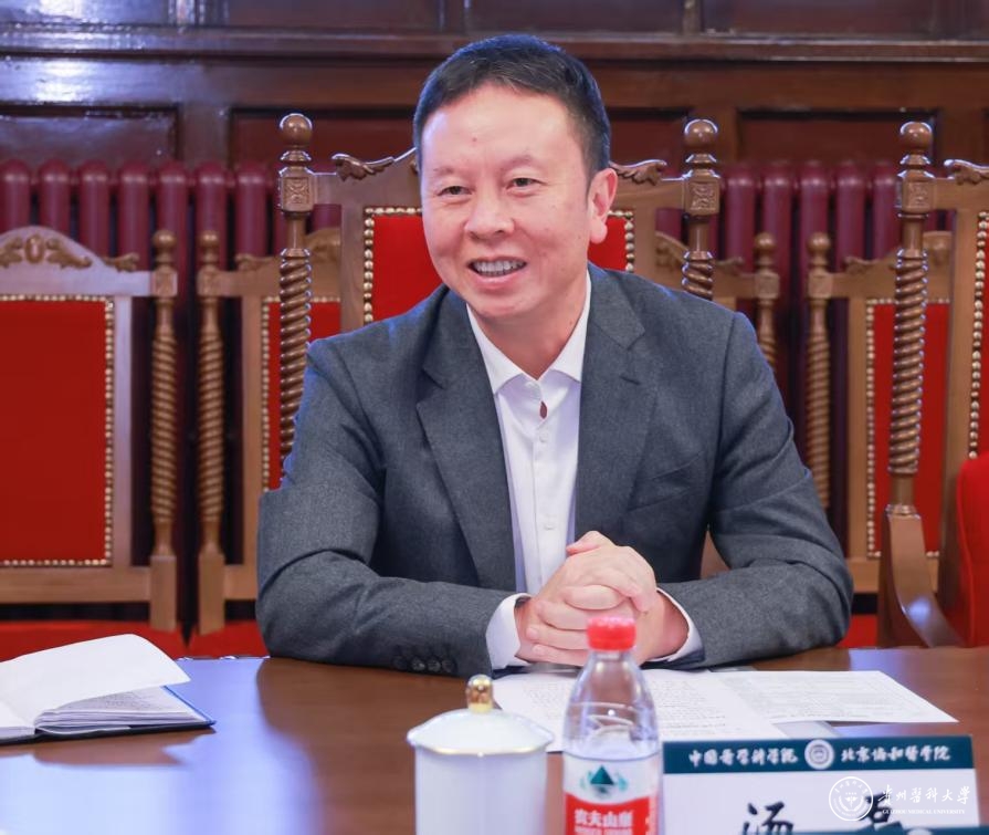 为进一步推动与中国医学科学院北京协和医学院(简称“院校”)对口支援工作,10月11日,校党委书记汤磊,党委副书记、校长俞松,副校长潘卫东一行赴院校交流。院校党委书记、副院校长邓海华,党委副书记张勤,副院校长、党委常委杨涛出席交流座谈会,两校相关职能部门负责人参加。会议由张勤主持。
