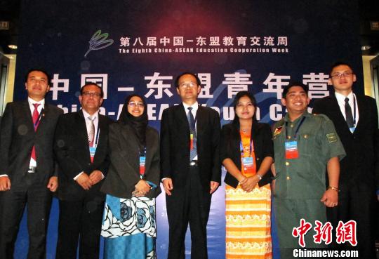 图为中国—东盟青年营活动上共青团中央书记处书记周长奎与东盟十国青年代表合影。 杨云 摄