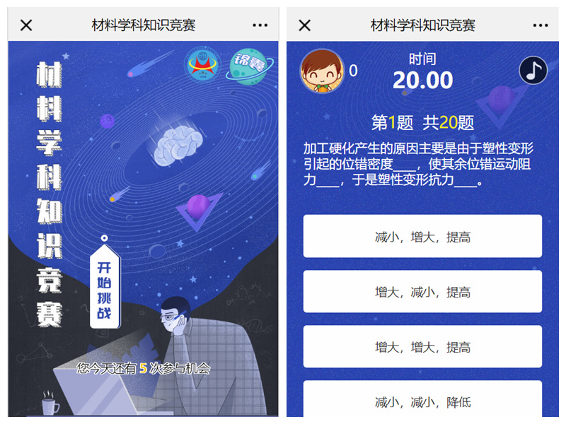 为响应教育部及学校“停课不停学”的号召,进一步培养材料学科大学生的专业学习兴趣和研究热情,丰富学生在疫情防控期间的精神文化生活,培养积极向上的学习态度,三月至五月,九游体育官网举办了第二届“勤学善思,通‘材’达识”材料学科基础知识竞赛。