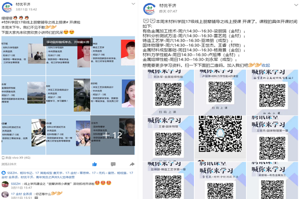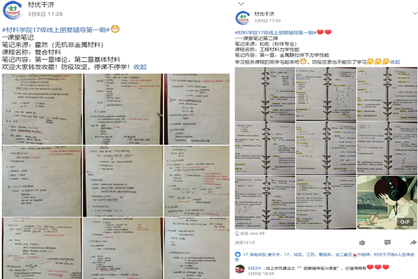 为贯彻落实学校对新冠肺炎疫情防控工作部署,积极响应学校“学雷锋”志愿服务月活动要求,做好疫情期间线上教学服务,结合实际开展朋辈帮扶,自新学期线上授课伊始,九游体育官网依托各类网络平台持续开展“材优干济”系列学风建设活动。营造良好的线上学习氛围,引导学生端正学习态度、及时互助答疑解惑、提升自主学习能力,助力良好学风形成。