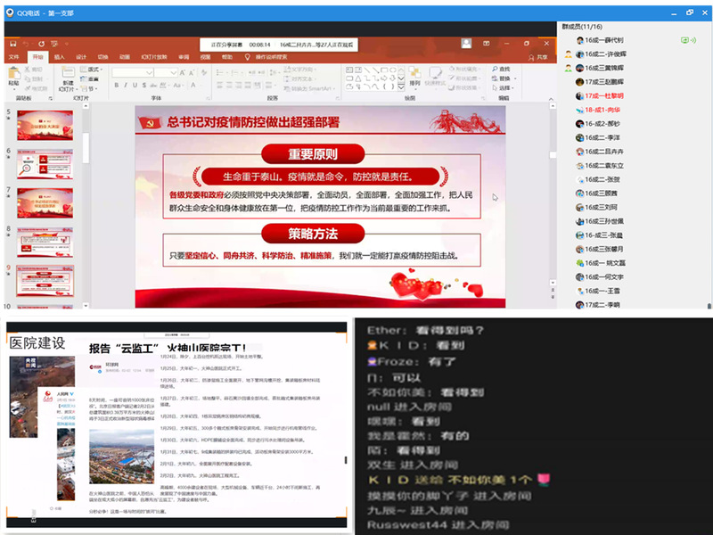 各支部党员同学,结合在疫情防控中看到听到的感人事迹和震撼事例,开展了深刻生动的线上学习讨论。大家谈体会、谈感想,相互交流,相互鼓舞,让思想得到升华,让党性更加坚定。