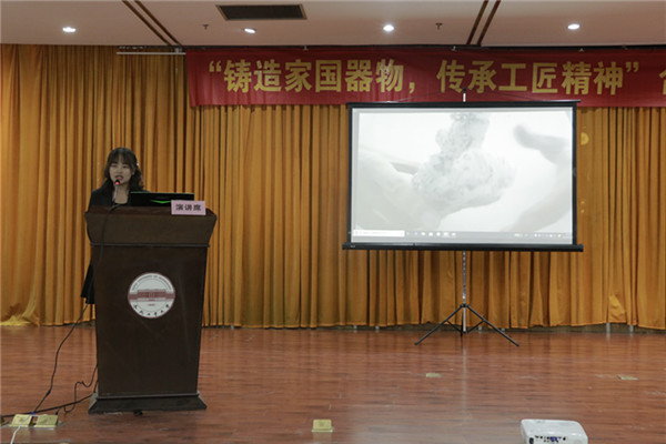 决赛答辩环节中,工作人员将各参赛队伍的作品进行现场投影展示,答辩选手通过PPT向现场评委和观众展示作品的设计思路、理念、创新点以及制作过程的体会和收获等。其中,来自“我们第一对不对”队在介绍“司母戊鼎”作品时讲述到“鼎在春秋时期就被视为传国重器,象征着权力和地位,在冶金技术、铸造技术极不发达的时代,工匠们用智慧和技术制造出具有跨时代意义的器物,今天我们将传承他们的精益求精精神、专注精神、创新精神展现最好的作品给大家。”