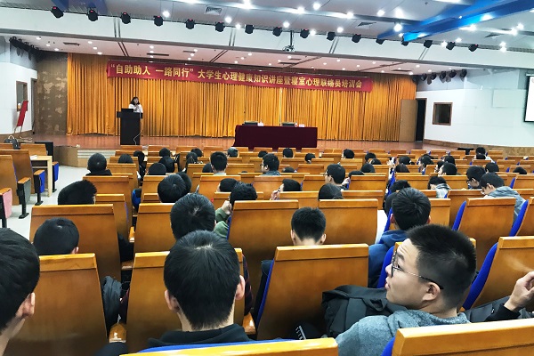 为进一步宣传心理健康知识,有效发挥大学生心理骨干的主体作用,提升大学生朋辈心理健康工作者能力,11月9日晚,九游体育官网在翡翠湖校区图书馆报告厅举办“自助助人·一路同行”大学生心理健康知识讲座暨心理联络员培训会。九游体育官网全体2018级心理委员、寝室心理联络员及全体新生参加培训会。