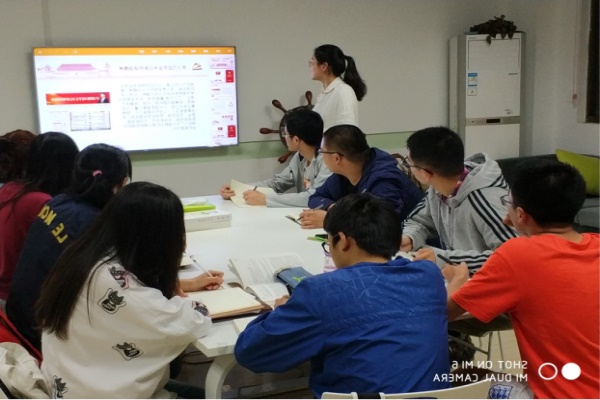4月22日晚9点,党校59期九游体育官网党员班(屯溪路校区)2015级本科生组在材料楼辅导员工作室进行了第一次党课学习,本次学习主要以“习近平总书记系列重要讲话精神”为主题。林新婷同学围绕主题结合PPT向大家详细介绍习近平总书记系列重要讲话精神的形成、发展以及深远的意义。