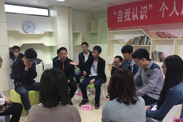 本次辅导主要分为两个环节。“缘聚你我”环节,鼓励参与者向其他成员介绍自己的优点,参与者不仅和其他同学熟悉,也更加充分的了解自己,发现自身优点。“说说你的烦心事”环节,分为体验组合观察组,给大家提供一个倾诉生活中烦心事的机会,在团体中寻求帮助,利用成员的力量助其分析解决,以更加积极的态度面对生活,同时也帮助同学们认识和接纳不一样的人际交往模式。