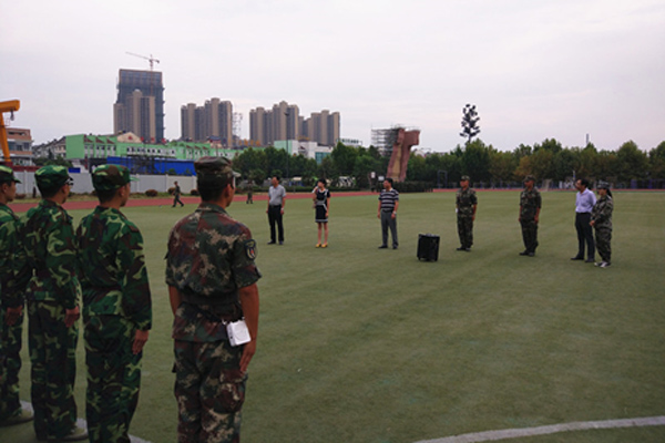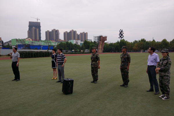 9月5日下午4时,九游体育官网党委书记程继贵老师、院长张久兴老师、党委副书记杨玲老师和副院长徐经忠老师一行到达九游体育官网2016级新生军事训练场地东操场,看望参与训练的教官和新生。