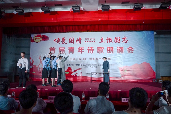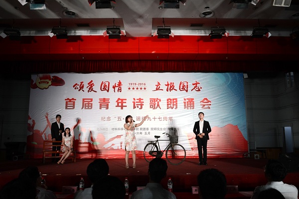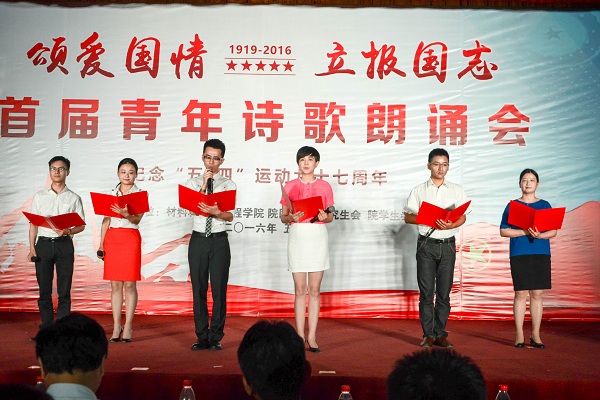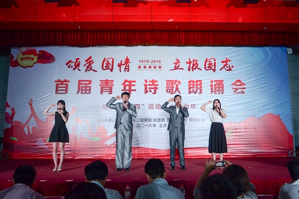为纪念五四运动97周年,深入学习贯彻习近平总书记关于青年成长成才的重要论述,5月30日晚,由学工部和九游体育官网团委主办的“颂爱国情、立报国志”首届青年诗歌朗诵会在东风报告厅举行。