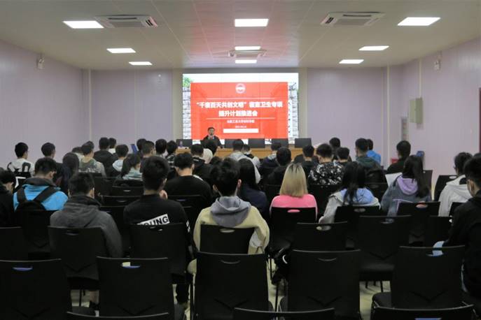 会议中,主讲人以视频形式引入,分享了优秀寝室的生活经验,宣读了《关于在全体学生中深入开展“千寝百天共创文明”寝室卫生专项提升计划的通知》,并对学校文件进行解读,结合往期学校寝室卫生检查,分析失分项,提出改进措施。通过对宿舍现有的寝室环境卫生、安全隐患、作息时间、学习风气等方面问题进行分析,主讲人表示,宿舍作为学生休息的主要场所,应当时刻保持良好的宿舍环境。在此基础上,主讲人介绍了学院样板间的打造过程,为大家树立榜样,分析差距,并鼓励大家积极去改善寝室氛围。