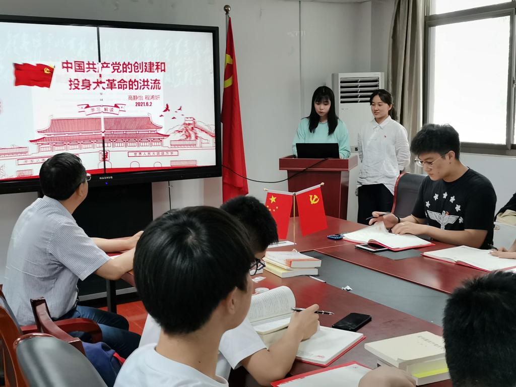 6月2日下午15时,九游体育官网本科生第三党支部集中开展学习新民主主义革命时期党史主题党日活动,学院党委委员徐经忠老师、党支部指导老师葛海涛全程参与旁听与指导。主题活动由程浠妍和高静怡两位党支部新发展党员主持活动并进行党史授课,第三党支部全体成员(含预备党员)参加活动。在授课中,全体党员通过课件重温学习“大革命”时期、“土地革命”时期、“抗日战争”时期、“解放战争”时期等四个历史时期的内容,深刻领会党领导人民经过浴血奋战,完成民族独立和人民解放的历史任务,建立中华人民共和国,实现中国从几千年封建专制政治向人民民主的伟大飞跃。第三支部全体党员通过学习新民主主义革命时期历史,进一步做到学史明理、学史增信、学史崇德、学史力行,增强“四个意识”、坚定“四个自信”、做到“两个维护”,不断提高政治判断力、政治领悟力、政治执行力,为全面建设社会主义现代化国家、实现中华民族伟大复兴中国梦而不懈奋斗。接下来,支部进行了党史知识竞答活动,成员们积极参与,热情度很高,现场气氛活跃。