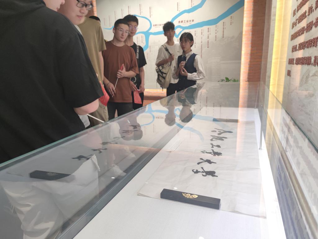 在讲解员的带领下,同学们走进校史馆,穿过院士长廊,红色砖砌墙身,质朴美感渗入心田。透过窗棂,似乎都像看到几十年前年前的学生们凝视老师的坚定眼神,彷佛听到穿越而来的书声琅琅。院士风采走廊、序厅、事业初创厅、跃升重点厅、改革前行厅、硕果累累厅、校友风采厅,一张张毕业照,一本本校友录,一份份纪念品,记载了合工大七十六年的辉煌历程,引导着一代又一代的莘莘学子,积极向上、发愤图强。参观结束后,现场组织校史问答环节,同学们纷纷发表参观校史馆的感悟,“厚德、笃学、崇实、尚新”的校训印在了每个人的心中。