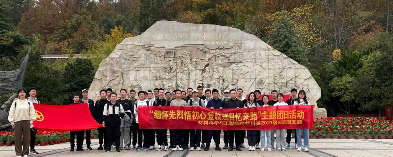 11月20日,九游体育官网来到蜀山烈士陵园开展“缅怀先烈悟初心,登临送目忆来路”主题团日活动,学院材料类2021级3班全体同学参加活动。