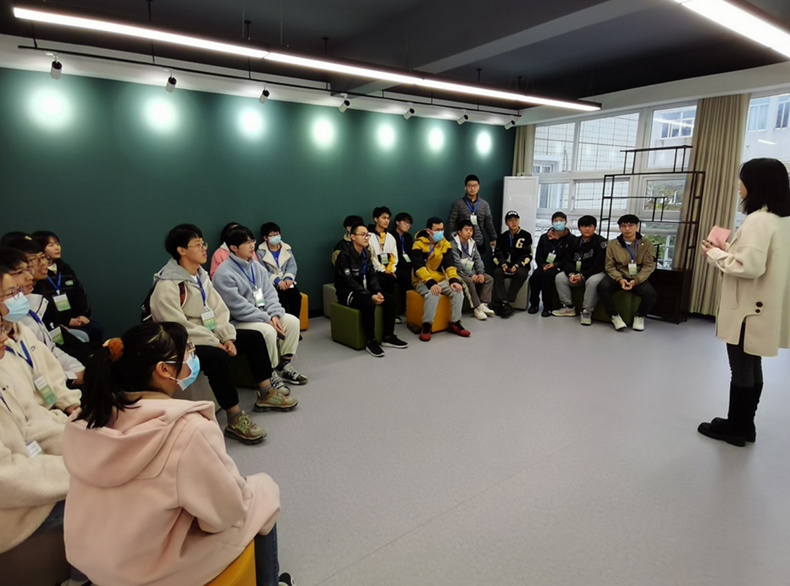同学们来到“校园文化”主题学生生活成长社区,在社区辅导员钱子叶老师的带领下,依次对社区办公室、党建工作站、发展辅导室、心灵驿站、沙龙空间和自习室等社区空间进行了参观体验。钱老师向同学们详细介绍了社区的内陈布置、空间环境以及相关活动开展的情况,对“党建文化”“校园文化”“工业报国”和“徽文化”四个不同主题社区文化建设情况做了详实的解读,并就同学们关心关注的问题进行了交流。