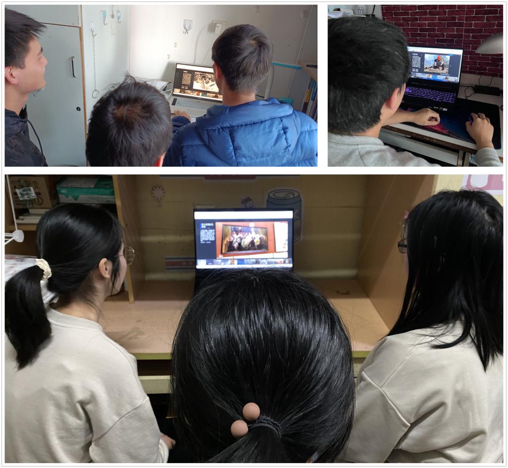 学生们在线上参展的过程中,近距离欣赏了中国美术馆及相关美术机构收藏的经典美术作品和近年来创作的优秀党史题材及现实题材作品。同学们在国画、油画、版画、雕塑中,在名家大师和优秀中青年美术家作品中流连忘返。线上参观美术展让同学们在欣赏中国大美丹青的同时更加了解了党史、新中国史、改革开放史、社会主义发展史,充分发挥了美术作品以美育人、以美化人的独特作用。