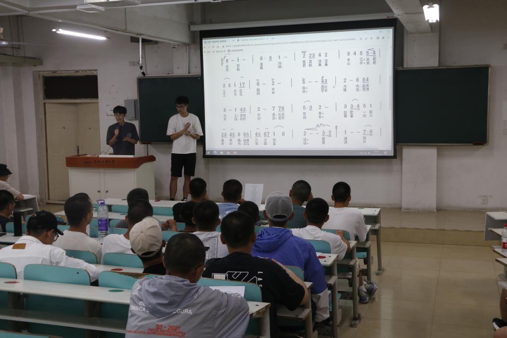 为加强新生爱校荣校教育,激发学生护校兴校意识,知校史,明校情,唱校歌,践校风,8月28日晚,九游体育官网组织开展“弘扬爱校荣校精神,唱响青春时代之声”爱校荣校主题教育班会,邀请破茧网络音乐文化工作室成员作校歌教学指导。九游体育官网相关老师、2022级新生合唱团成员参与本次主题班会。