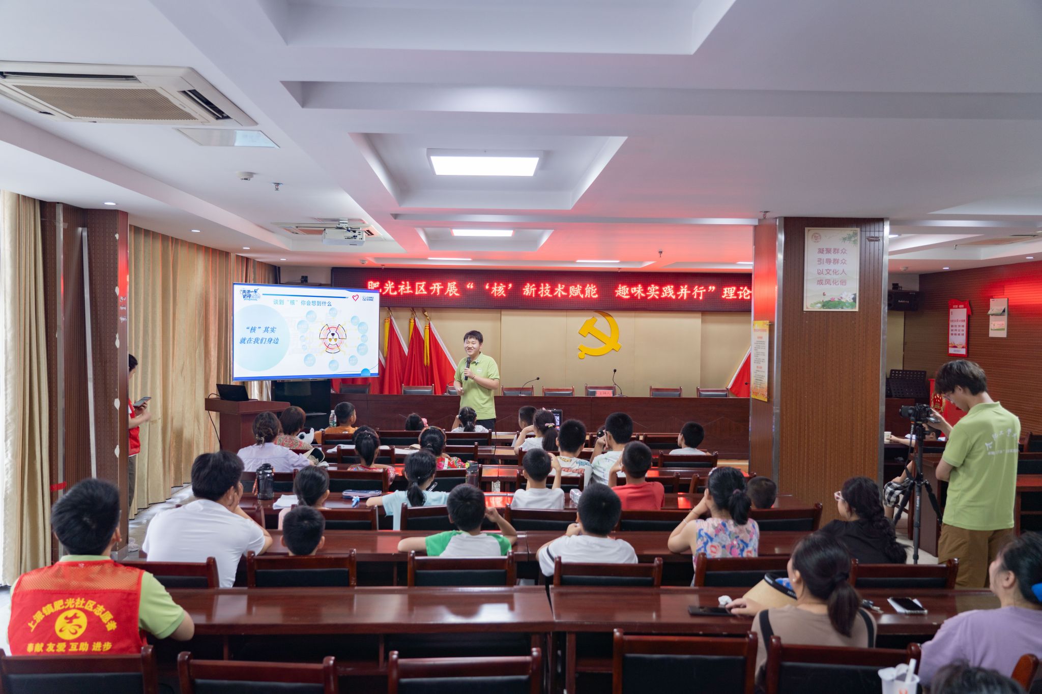 本次活动以知识讲解为主,以游戏互动与趣味实验为辅,向小朋友们科普了与核相关的知识。宣讲人马思远详细地向参加活动的小朋友们介绍了中国核事业起步和发展的历史。他们一起回顾了中国核工业的在技术研发、设施建设等方面所取得的重要成就。这些成就不仅体现了中国核工业的崛起,也为今天核技术在生活中的应用提供了坚实基础,例如计算机断层扫描技术(CT)应用于机场、地铁等场所的安检。随后宣讲人介绍了我国核工业的一位顶梁柱、两弹一星元勋之一——郭永怀先生。