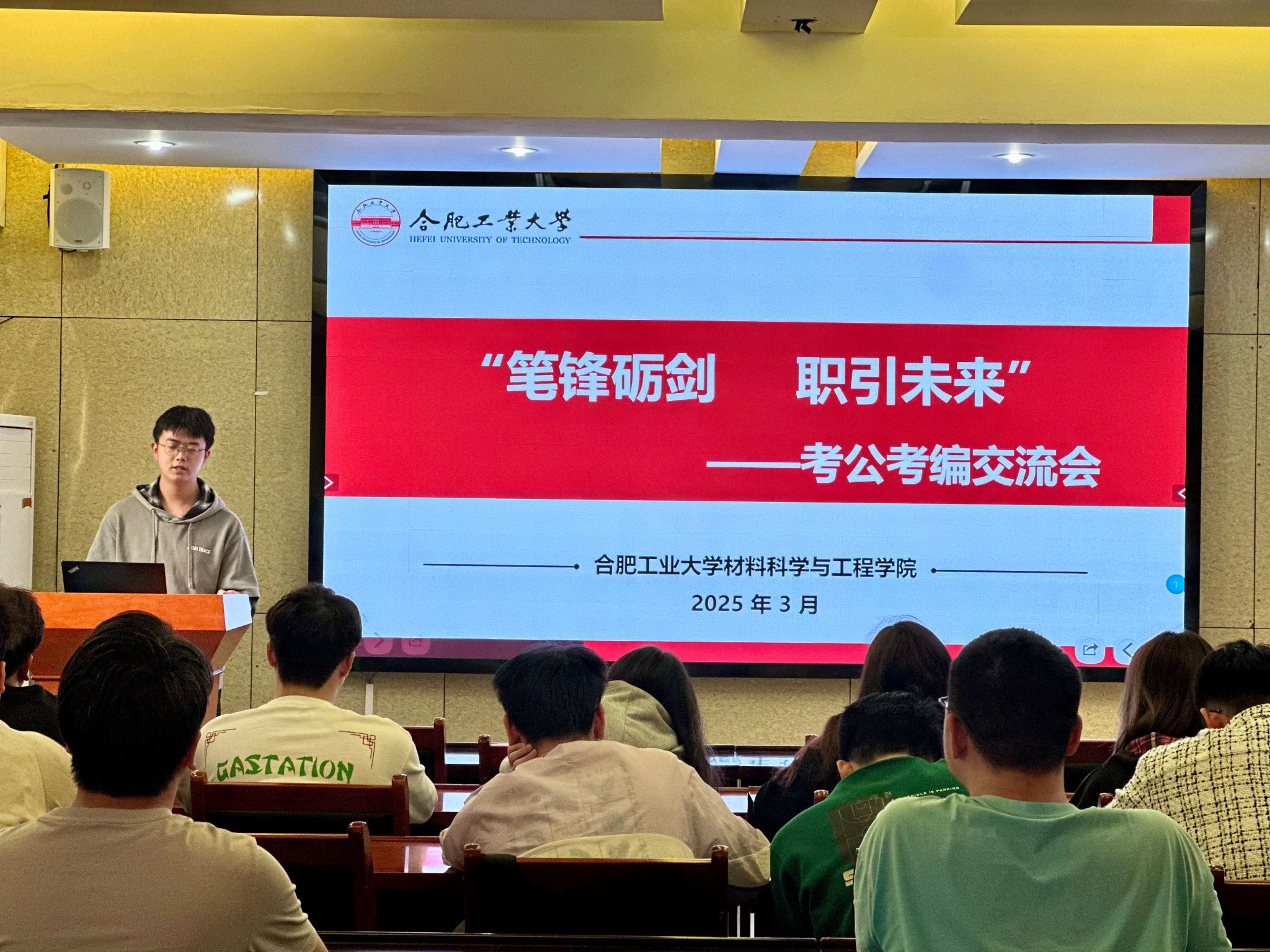3月24日下午,九游体育官网在材料楼三楼多功能厅举办 “笔锋砺剑职引未来”考公考编经验交流会。本次活动充分发挥优秀毕业生传帮带作用,特别邀请国考上岸的2022届毕业生张钊鹏担任主讲。