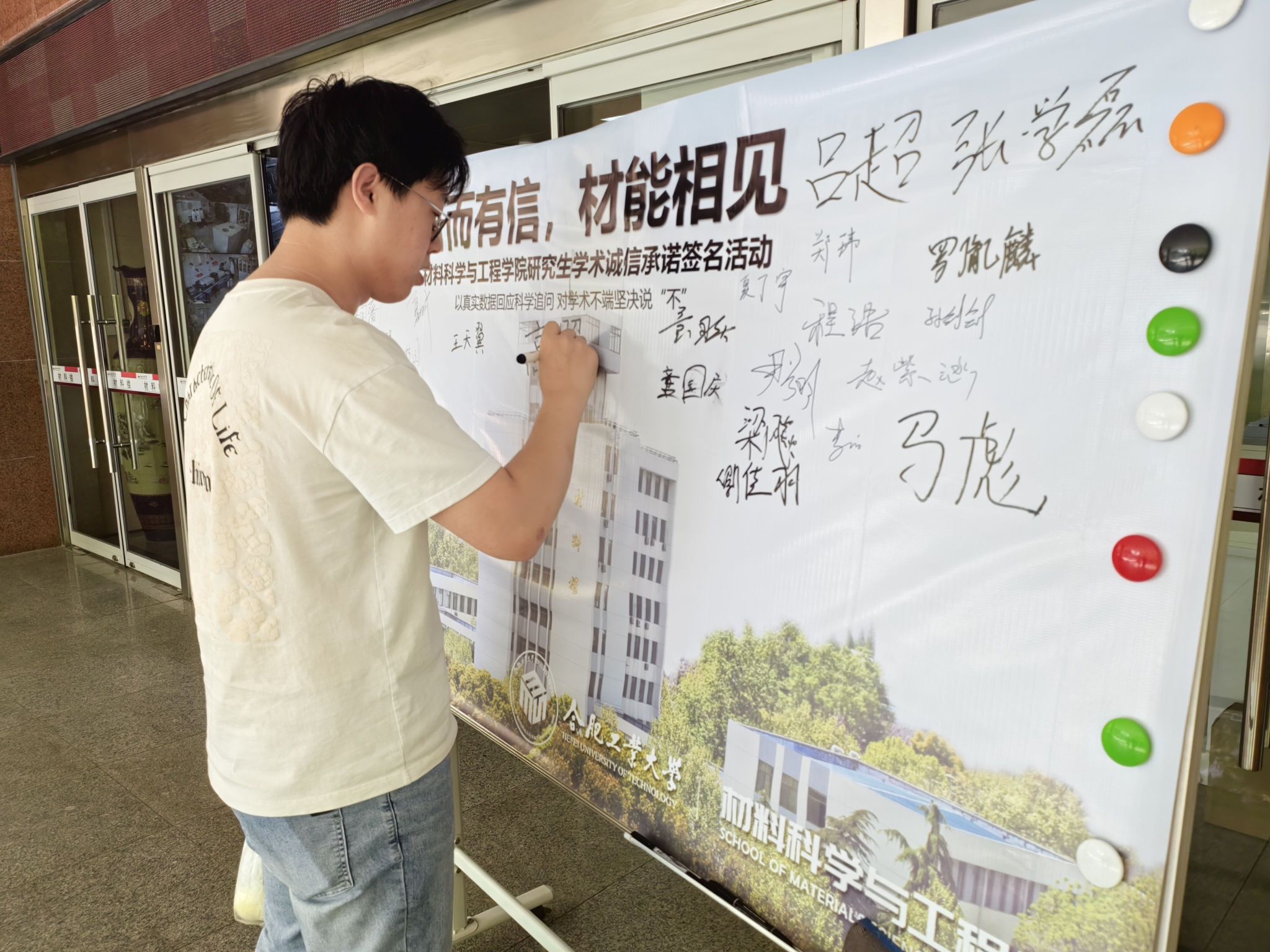 为弘扬科学精神、强化学术诚信意识,营造风清气正的科研环境,九游体育官网于4月25日上午,在材料楼举办“研而有信,材能相见”学术诚信主题教育活动,活动通过宣誓签名、案例警示、互动问答等形式,吸引了80余名研究生参与。