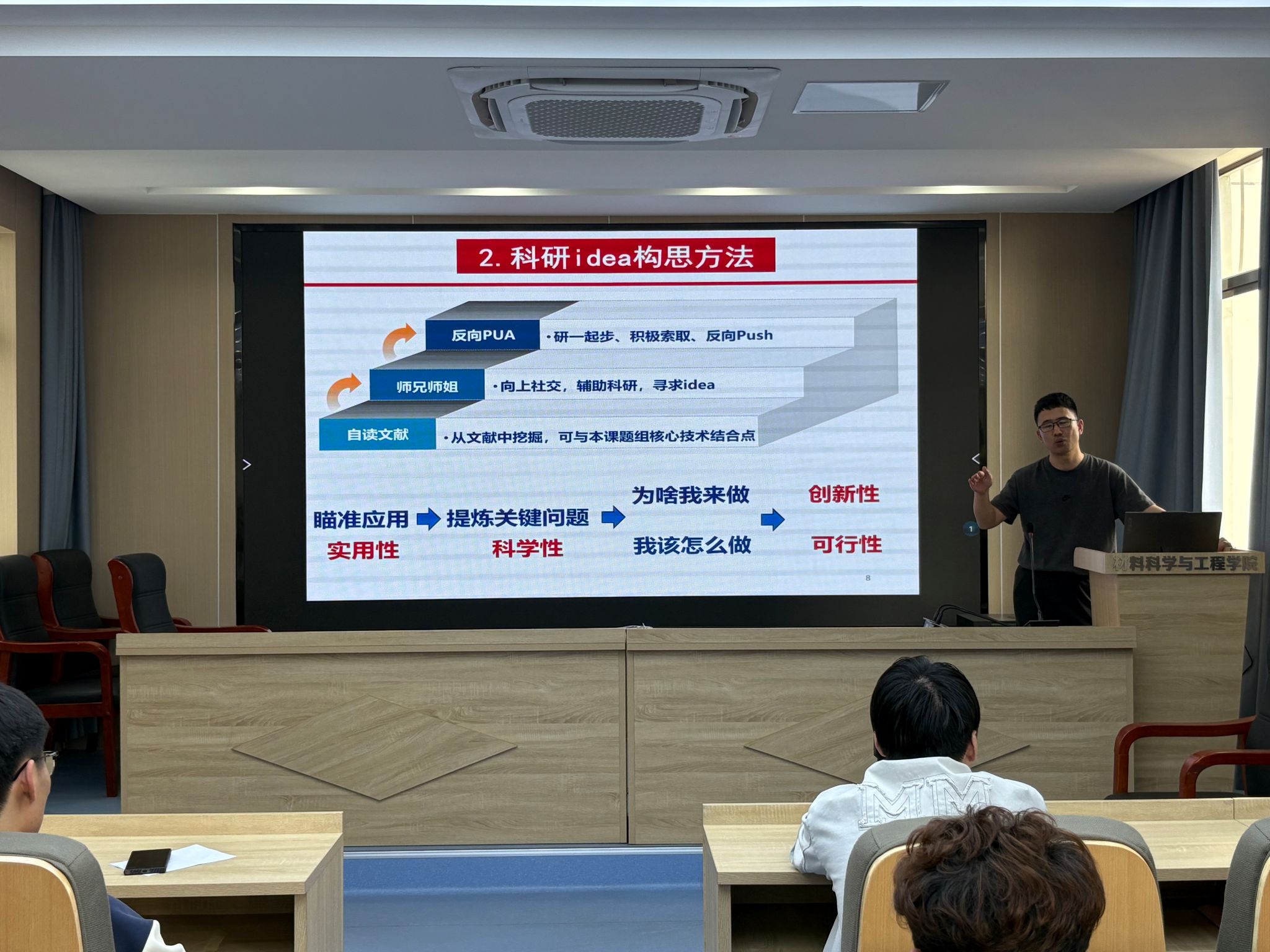 陈超老师结合自身科研与指导经验,“科研选题策略”“文献高效阅读方法”“实验数据处理技巧””及“学术写作规范”等核心内容展开分享,系统性梳理了科研全流程的关键环节。